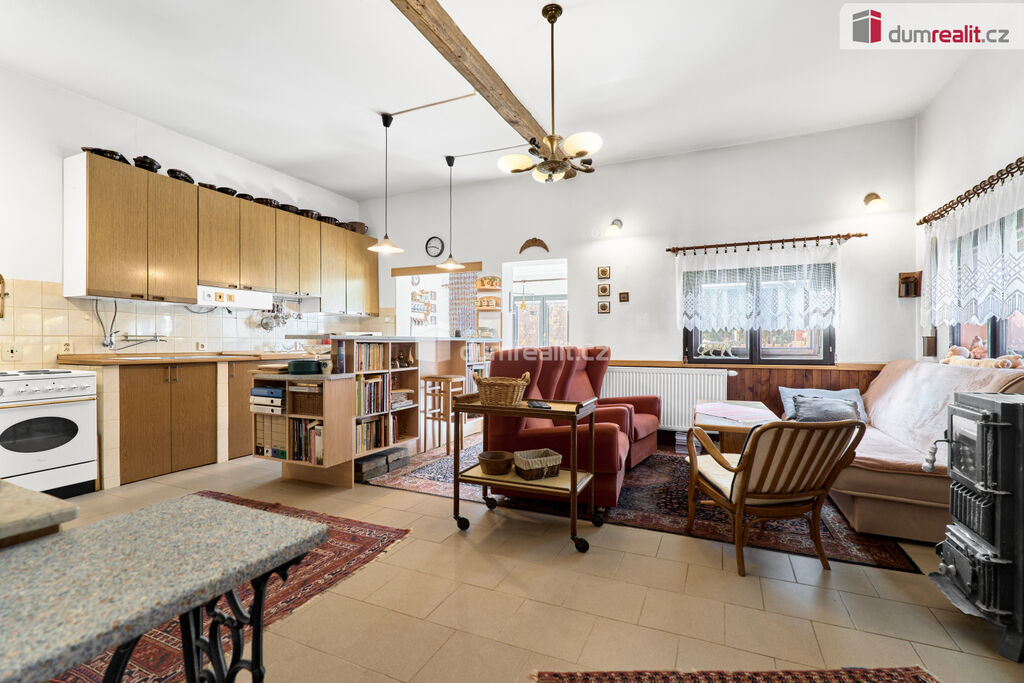 Samotný dům byl dostavěn v roce 2001 a zdá se, že ho čas šetřil. Jedná se o částečně podsklepený dvoupodlažní objekt určený k trvalému obývání. Přízemí nabízí prostornou halu s kuchyňským koutem, jídelnou a spížemi, hostinský pokoj a sociální zařízení. V patře najdete dvě prostorné ložnice s výstupem na terasu, obývací pokoj, kuchyň se spíží a další sociální zařízení.