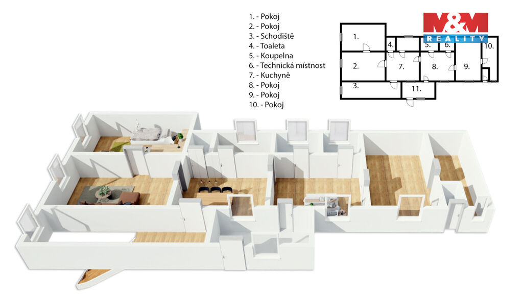 V 1. NP se nachází bytová jednotka s možností vybudovat druhou, ve 2. NP je další samostatný byt s terasou a balkonem.