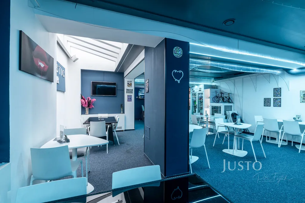 ✅V ceně pronájmu je veškeré pevné vybavení baru, stoly a židle, barové stoličky, regály, 1 ks televize a barevné osvětlení v různých barevných modifikacích.