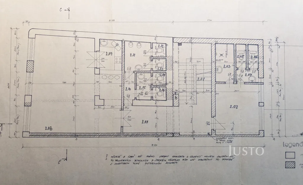 - sociální zázemí s WC pro hosty v 2.NP o výměře 13,7 m² využívají dvě provozovny, poměrná část pro hosty baru je 6,8 m².