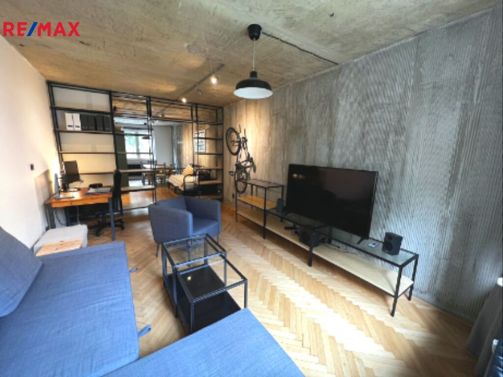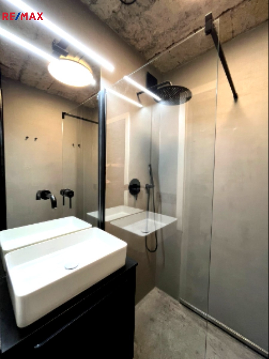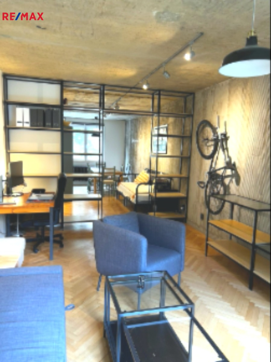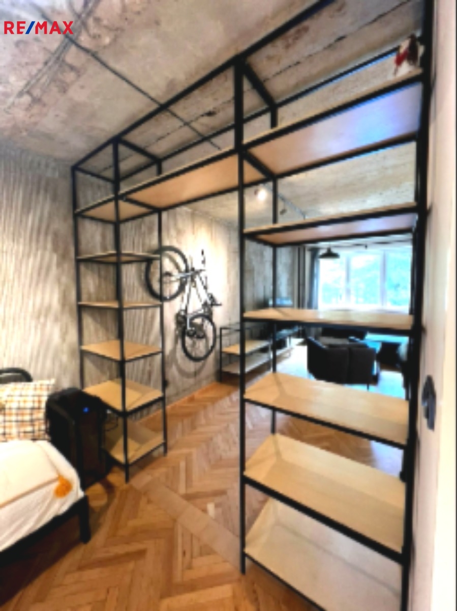 Nabízíme k pronájmu jedinečný byt 2+kk (původně 4+1), o podlahové ploše cca 73 m2 + lodžie 4 m2 , v 1. nadzemním podlaží bytového domu v pražských Záběhlicích, který prošel promyšlenou rekonstrukcí a nabízí originální atmosféru industriálního stylu. Úpravou dispozice vznikl vzdušný, otevřený prostor s podlahovou plochou cca 41 m², propojující kuchyň, jídelnu a obývací část. Jednotlivé části jsou pouze opticky rozděleny a navazují na předsíň. Kuchyňská linka je plně vybavena: plynová varná deska, elektrická trouba, myčka, lednice s mrazákem a pračka se sušičkou. Z otevřené předsíně je vstup do koupelny se sprchovým koutem a samostatné toalety. Ložnice o velikosti cca 23 m² nabízí 7 vestavných skříní a přímý vstup na zasklenou lodžii. Další úložné prostory zajišťuje vestavná skříň v předsíni. Orientace bytu na západ (kuchyň, jídelna) a východ (obývací část, ložnice, lodžie) zajišťuje dostatek denního světla po celý den.