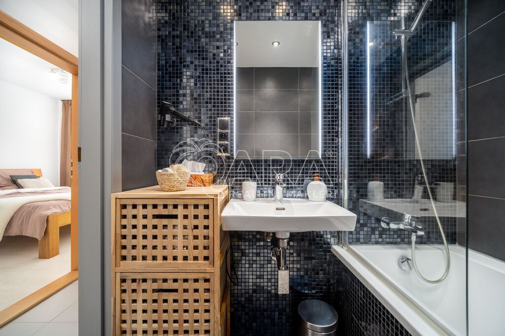 Byt o velikosti 72 m2 se nachází ve 4. podlaží panelového domu s výtahem. Prošel vkusnou rekonstrukcí, takže pro vás to znamená, že můžete ihned bydlet. Kombinace dřevěných dekorů a moderních materiálů dělá byt velmi útulným místem, které uspokojí i náročnější klientelu.