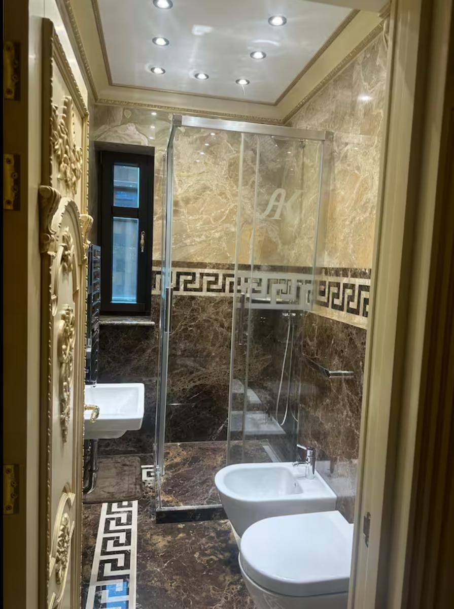 V obou koupelnách je podlahové vytápění, obklady i podlahy jsou z luxusního mramoru.
