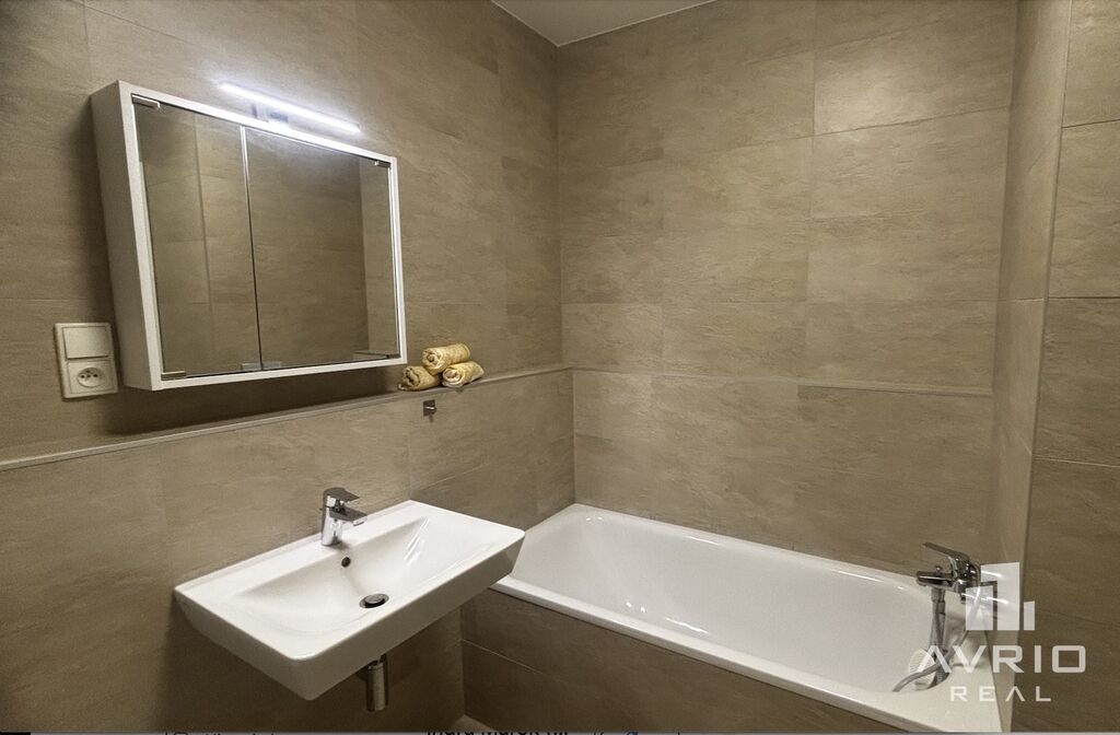 Je částečně zařízený – moderní kuchyňská linka se spotřebiči a základní vybavení, sedací souprava, TV a pracovní stůl. Na oknech jsou venkovní žaluzie na dálkové ovládání.