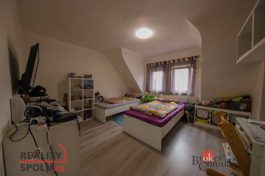 Hlavní obytný prostor tvoří otevřená kuchyň s jídelnou a obývacím pokojem, díky čemuž působí celý byt vzdušně a velmi útulně. Dále zde najdete samostatný pokoj (aktuálně využívaný jako dětský), menší komoru vhodnou jako šatnu a koupelnu s WC.Po schodech se dostanete do horního patra, kde je další místnost – nyní využívaná jako ložnice.
