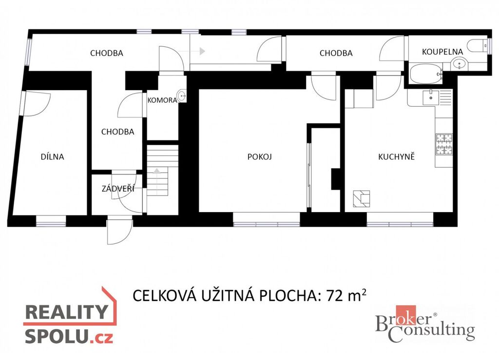 Celková užitná plocha domu včetně dílny je 72m2. Zahrada má celkem 614m2.