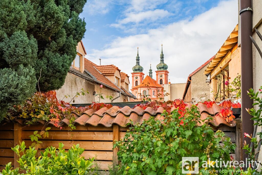 Za domem se nachází uzavřený dvorek se zahrádkou, terasou a studnou, ideální pro relaxaci a klidné posezení. Z terasy se otevírá jedinečný výhled na kostel Nanebevzetí Panny Marie, který dotváří kouzelnou atmosféru celého místa.