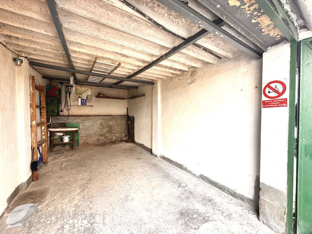 Cihlová garáž stojící na parcele o výměře 16m2 má vjezdový otvor o rozměrech 2,03m x 2,00m (šířka x výška). Vnitřní rozměr garáže je 5,44m x 2,82m (délka x šířka). Střecha garáže je pultová, v nedávné minulosti opatřena novou krytinou (viz fotodokumentace). Do garáže je zavedena elektřina.