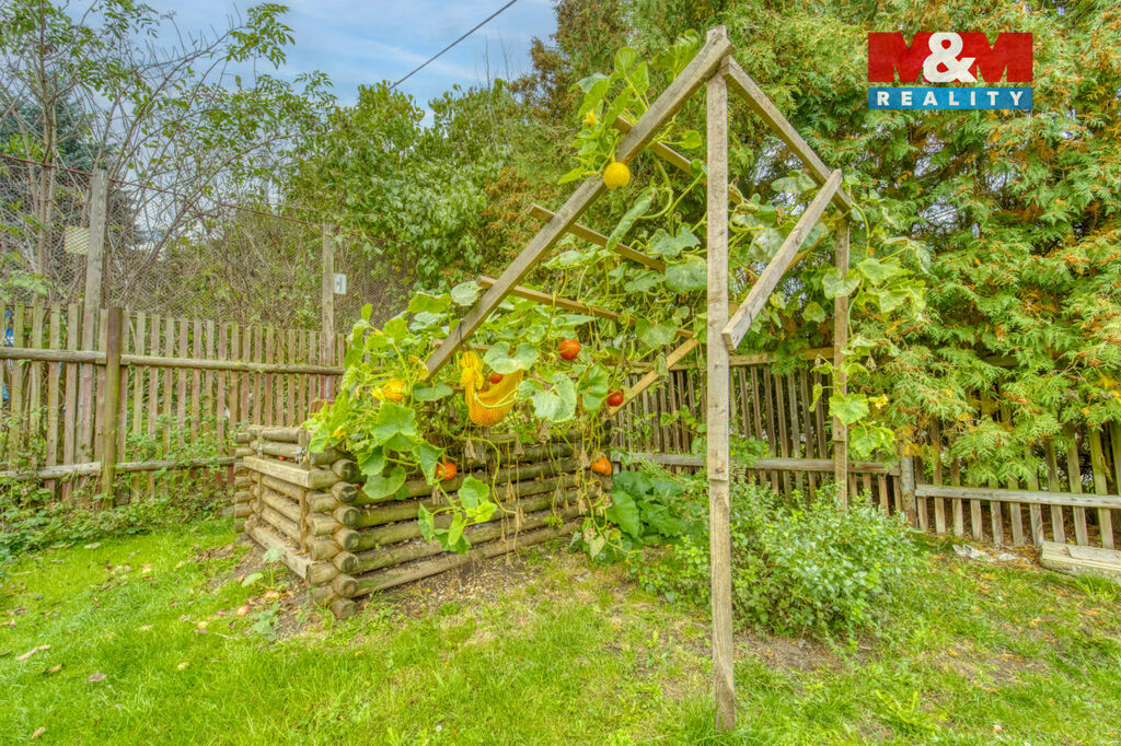 Parkování bez starostí: garáž, stání na pozemku i na ulici. Zahrada okrasná i užitková, oplocená, doplněná o dílnu a kůlnu. Příjezd zpevněný, vhodný i pro nákladní auta. Uvnitř keramické podlahy, dřevěné stropy a koupelna s vanou, sprchou i bidetem.