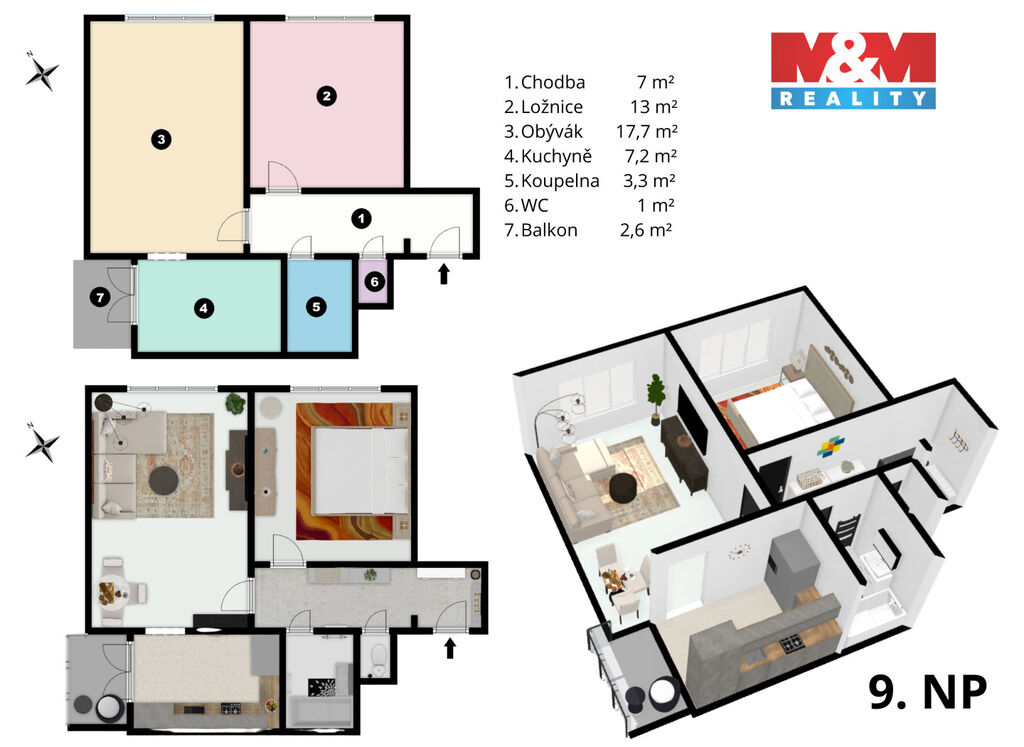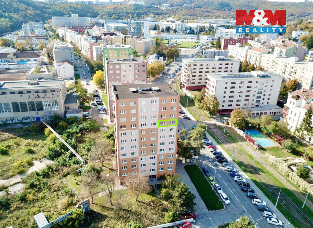 Máme pro vás byt kousek od Mendlova náměstí a Výstaviště! Stylový, modernizovaný a skvěle situovaný byt 2+1 s lodžií a výhledem na Špilberk i Petrov čeká na své nové majitele. Nachází se na 9. NP revitalizovaného panelového domu na ulici Veletržní. Celková plocha činí 55 m² (včetně lodžie 3 m² a sklepa 3 m²). Dispozice: vstupní chodba, samostatné WC, koupelna s vanou, obývací pokoj, kuchyně s přístupem na lodžii a neprůchozí ložnice. Kuchyně není zatím vybavená, protože 100 lidí - 100 chutí. Kuchyňská linka bude tedy plně v rukou nových majitelů. V přízemí se nachází sklepní kóje a společná kolárna. Vše potřebné máte po ruce – obchody, služby, restaurace i skvělou dopravní dostupnost. Přijďte se přesvědčit osobně o výjimečnosti tohoto bytu! Rádi vás uvidíme na prohlídce. Uvedená cena je za nemovitost.