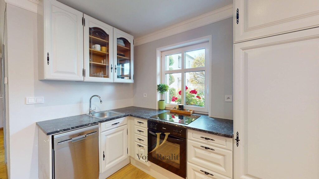 Byt se pronajímá kompletně vybavený včetně kuchyňský spotřebičů, nádobí a pračky. Pračka se nachází v samostatné místnosti mimo byt, ve sdíleném prostoru - prádelně.