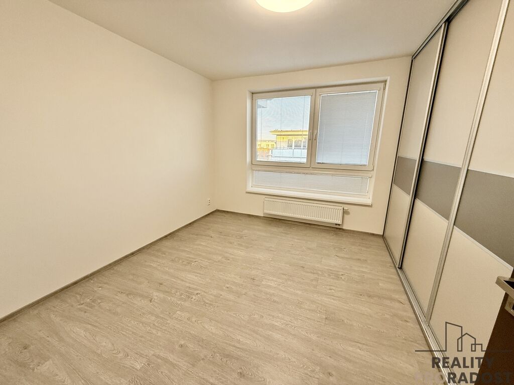 Dále zde najdete ložnici, pokoj s vestavěnou skříní, koupelnu s vanou i sprchovým koutem, samostatné WC s umyvadlem a komoru s přípojkou na pračku. Velkým benefitem jsou i vestavěné skříně a dostatek úložného prostoru.