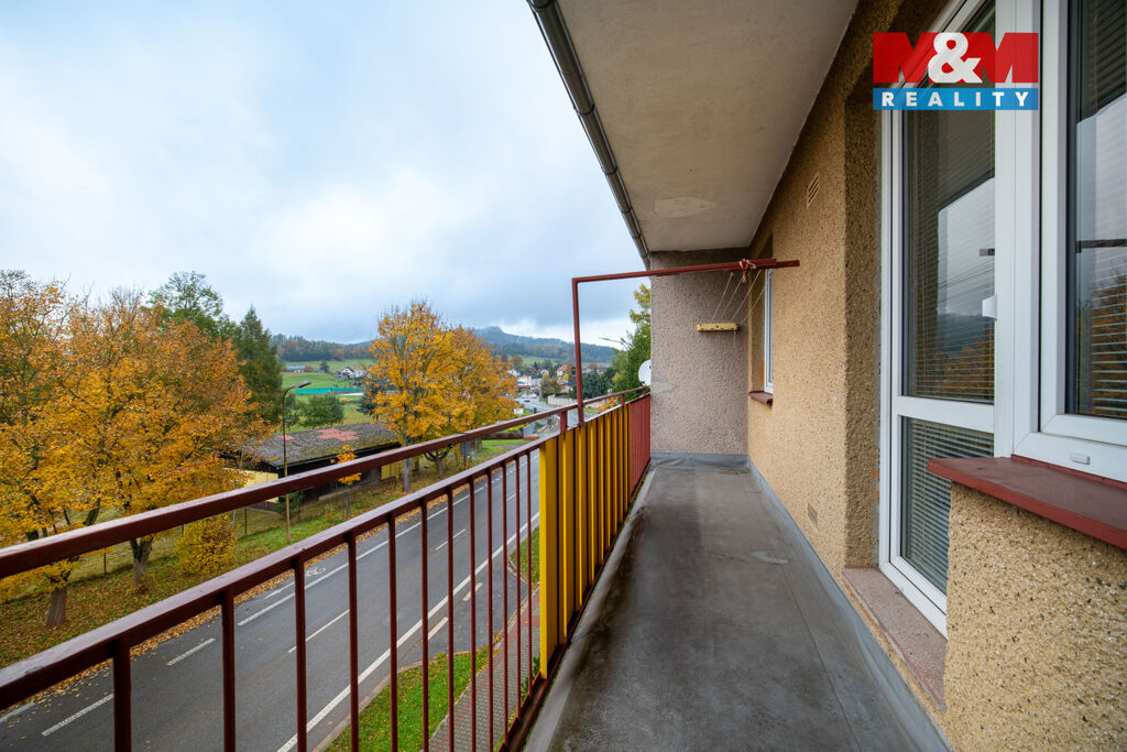 Byt je v původním, zachovalém a dobrém stavu. Nabízí ideální dispozici, kterou tvoří vstupní chodba, komora, dva pokoje, koupelna, toaleta, kuchyně a obývací pokoj se vstupem na prostornou lodžii, na které si můžete vychutnat ranní kávu při pohledu na oblíbený skalnatý útvar Ostaš, kde nalezneme například skalní město či turistické trasy.