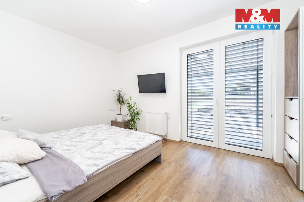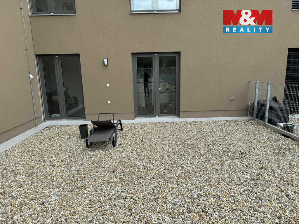 Byt o dispozici 3+kk a užitné ploše 102m² se skládá ze dvou ložnic, koupelny a samostatného WC. Prostorná chodba, které vede bytem následně ústí do světlého obývacího pokoje s kuchyňským koutem. Při vstupu do bytu je Vám hned v zádveří k dispozici také prostorná šatna. Na obývací pokoj navazuje balkon o ploše 11 m². K bytu náleží vlastní zahrádka o ploše 74m², na kterou je přístup z obou ložnic. Všechny pokoje tak poskytují možnost vyjít ven. K bytu dále náleží rovněž parkovací stání v podzemních garážích a sklepní kóje pro skladování potřebných věcí.