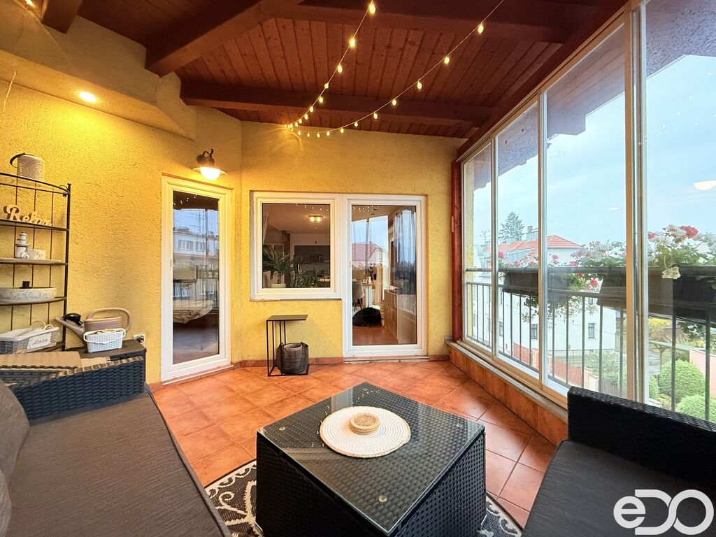 Podkrovní byt 3+kk s terasou v klidné ulici Sadovská, zároveň v centru města. Nachází se ve 3. podlaží třípodlažního domu bez výtahu. Součástí je zasklená terasa o velikosti 8 m² orientovaná do vnitrobloku a ještě navíc balkon.