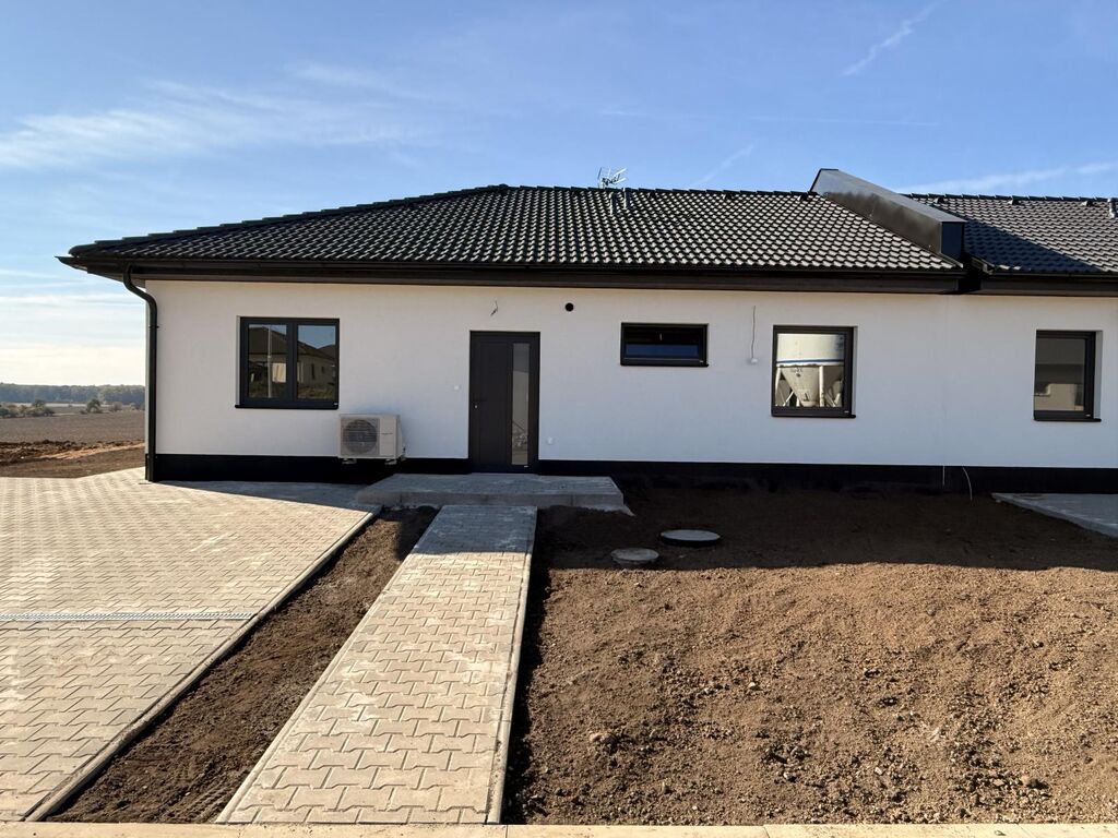 Nabízíme k prodeji RD - krásnou novostavbu typu bungalov, 5+kk, 94 m2 v obci Staré Nechanice. Nabízený řadový krajový rodinný dům je určený k bydlení pro 4 až 5 člennou rodinu. Obývací pokoj je spojen s kuchyňským koutem, dále se zde nachází 4 pokoje, prostorná koupelna s vanou a sprchovým koutem, oddělená toaleta a technická místnost. Střešní krytina Besk, postaveno z cihelného zdiva Heluz Family 38 cm. Vytápení je podlahové, pomocí tepelného čerpadla. Energetická náročnost budovy je třídy B. V podstřešním prostoru je vybudován úložný prostor o velikosti cca 18 m. Celý RD je postaven v silném nadstandardu - trojskla, vinylové podlahy, kvalitní dveře, velkoformátové obklady, atd. Před domem je velké parkovací stání pro dva osobní automobily, z obývacího pokoje je vstup na prostornou terasu s krásným výhledem do polí a lesů. Zahrada umístěna na jihozápad. Okolo domu je zhotoven chodník a pozemek kompletně upraven, srovnán. Rodinný dům je kompletně dokončený a ihned k nastěhování. RD se nachází v lukrativní části novostaveb - celá lokalita je kompletně zasíťovaná - dešťová kanalizace, splašková kanalizace, vodovod, asfaltová komunikace, optický kabel, veřejné osvětlení, elektřina. IS, včetně komunikace jsou zkolaudovány. Dostupnost - pouze 12 km od Hradce Králové a 10 km od Nového Bydžova, výborné spojení i směr Praha - 10 km sjezd na dálnici D11. Staré Nechanice jsou městskou částí města Nechanic, kde je kompletní občanská vybavenost. Právní servis a financování Vám zajistíme zdarma.