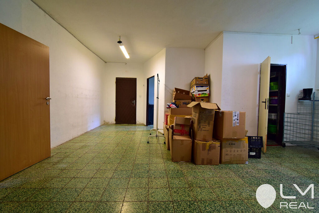 Stávající dispozice je vidět v přiloženém půdorysu: hlavní místnost, sociální zázemí, sklady, chodby.