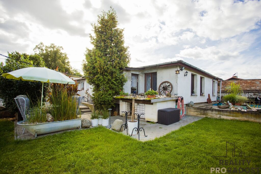 Na pozemku se nachází menší domek, který je možné využívat jako dočasné bydlení během stavby nového domu, nebo jako místo pro návštěvy. Nabízí dispozici 3+kk s koupelnou s vanou a WC, novými plastovými okny a novou fasádou. Kompletně vybavená kuchyně. Ústřední topení.