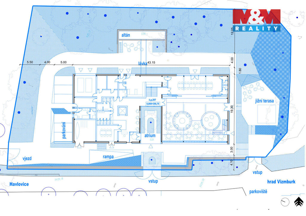 • Levé křídlo – dvoupodlažní část se zázemím pro kanceláře, technické místnosti, případně budoucí ubytovací jednotky či wellness.