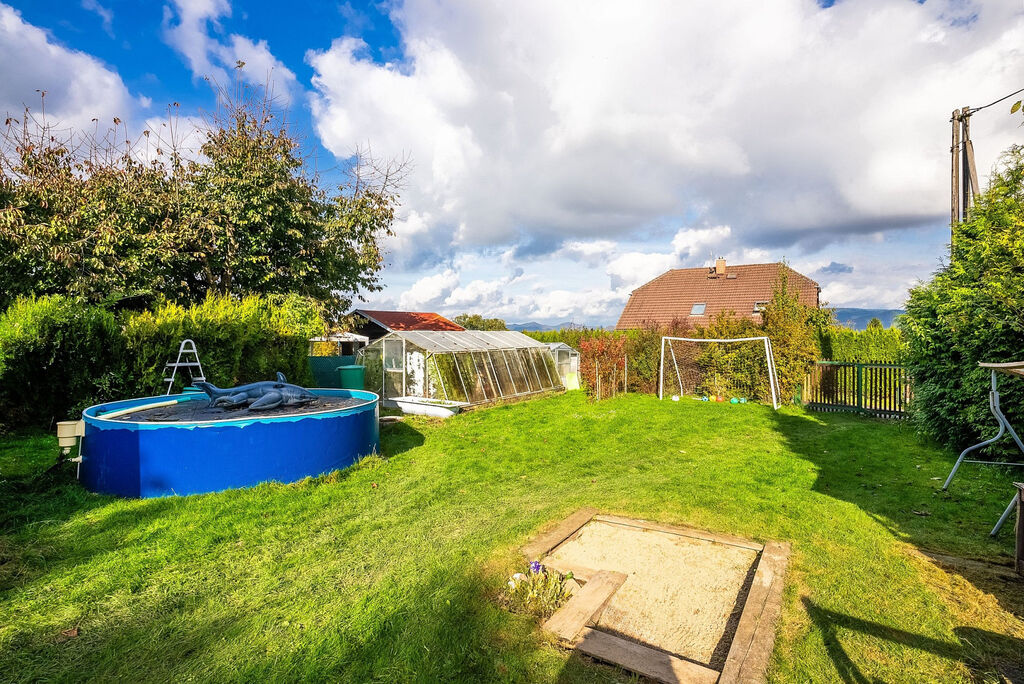 Rovinná zahrada o rozloze 512 m² s mírným sklonem nabízí dostatek prostoru pro posezení, zahradničení, dětské hry i menší bazén. Slunná orientace pozemku zajišťuje dostatek světla po celý den a místo působí příjemně klidnou atmosférou.