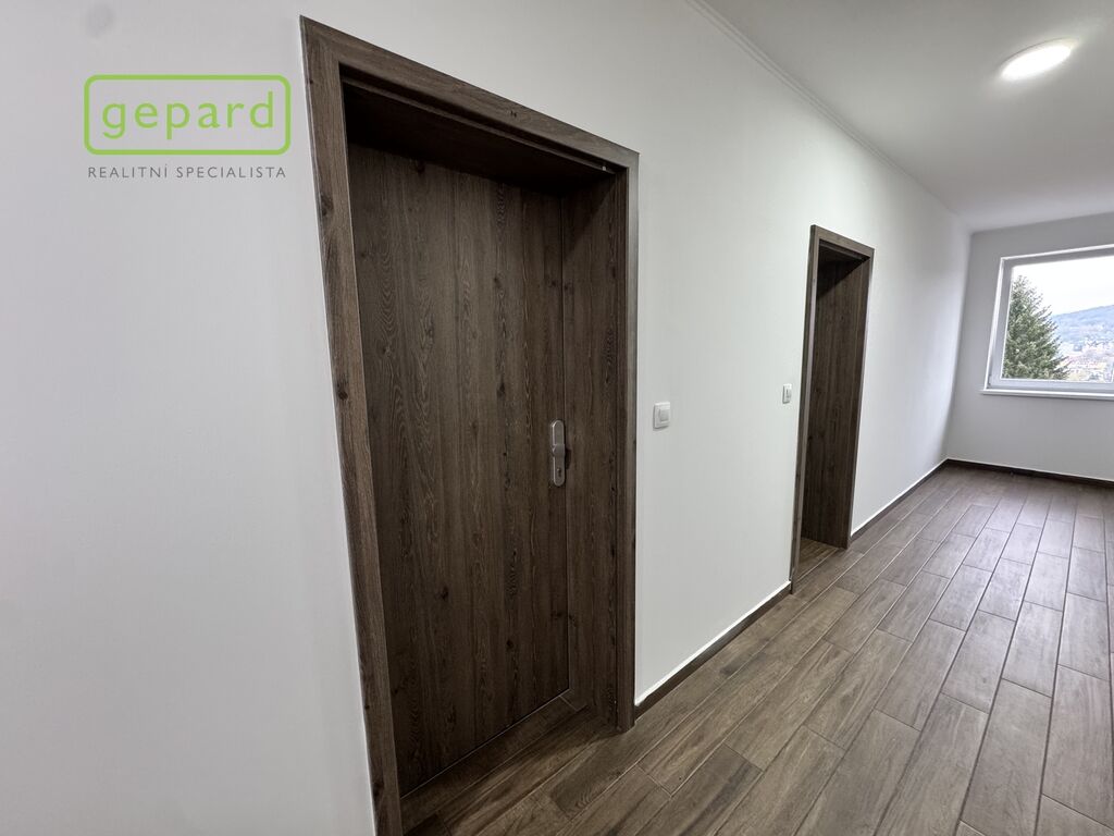 Byt je připraven k okamžitému nastěhování, bez nutnosti dalších úprav. Dispozice zahrnuje vstupní předsíň s místem na šatní skříň, koupelnu se sprchovým koutem, umyvadlem, skříňkou a WC a obytný prostor s moderní kuchyňskou linkou. Podlahy pokrývá kvalitní vinyl s dekorem dřeva, okna jsou plastová. K jednotce náleží také uzamykatelná komora na patře (2 m²).