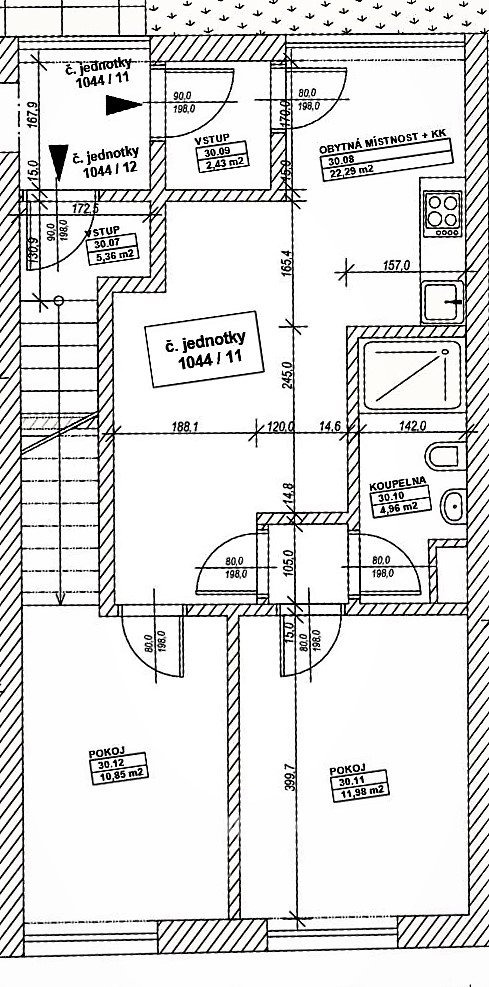 Dispozice bytu zahrnuje světlý obývací prostor s kuchyňským koutem vybaveným nadstandardní linkou se všemi spotřebiči (lednice s mrazákem, myčka, trouba, mikrovlnná trouba), dále dva neprůchozí pokoje, koupelnu s prostorným sprchovým koutem a toaletou. Samozřejmostí jsou bezpečnostní vstupní dveře a dostatek úložných prostor.