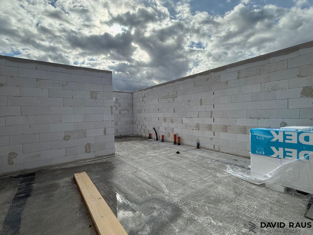 Rodinný dům o podlahové ploše 175 m² je ve fázi výstavby a je jeden ze čtyř nízkoenergetických rodinných domů na ulici Syrovická v Rajhradě.