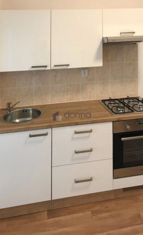 Kuchyň se nachází v předsíni, takže byt má 2 samostatné pokoje. Koupelna je zděná s vanou, toaleta je samostatně.