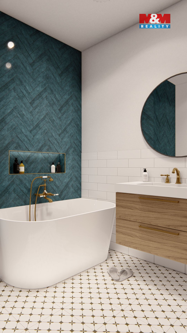 Součástí bude kuchyňská linka na míru se spotřebiči Gorenje, vestavěná lavice s úložným prostorem a knihovna navazující na kuchyň. V předsíni najdete vestavěnou skříň s pračkou se sušičkou, koupelna bude dle vizualizace. Voděodolné podlahy v parketovém vzoru dotvářejí atmosféru.