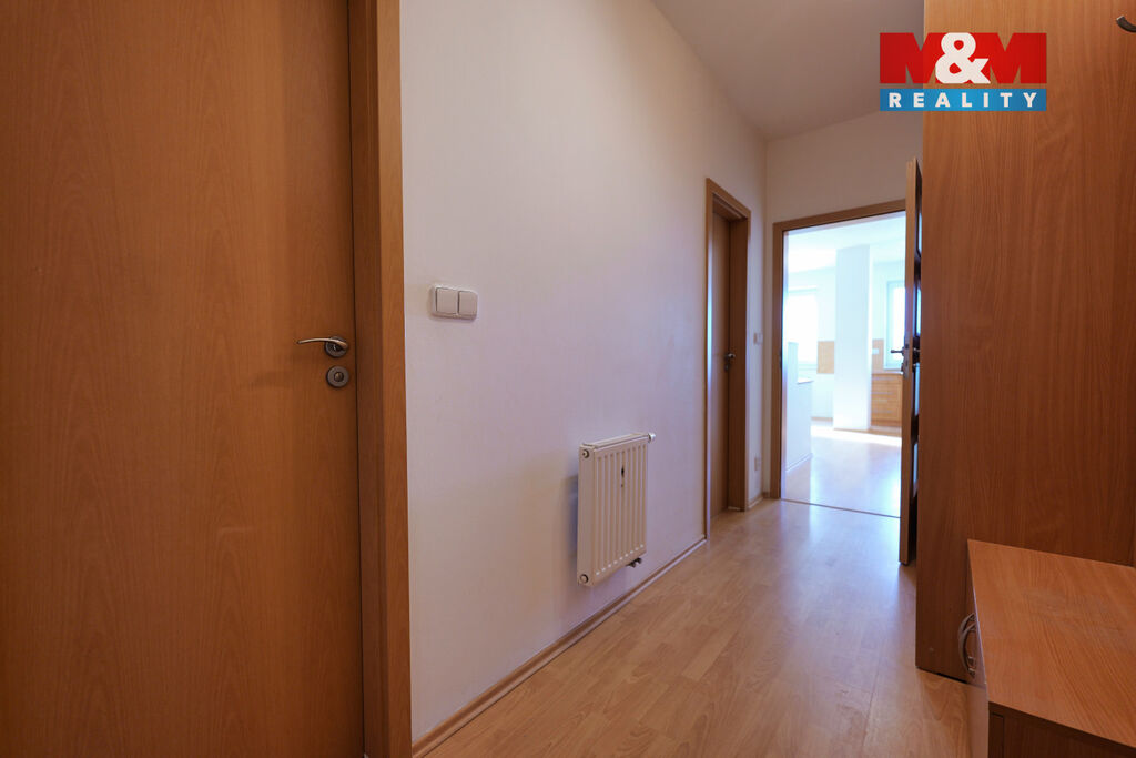 Dispozici tvoří chodba s vestavěnou skříní, samostatná toaleta, koupelna a hlavní obytná místnost s odděleným koutem pro spaní. Byt zůstává vybavený tak, jak je vidět na fotografiích. Vytápění i ohřev vody je řešeno dálkovým rozvodem.
