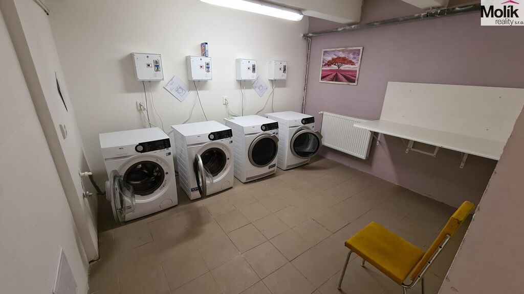 Pračky a sušičky k dispozici ve společné prádelně, pronájem parkovacího místa přímo u domu.