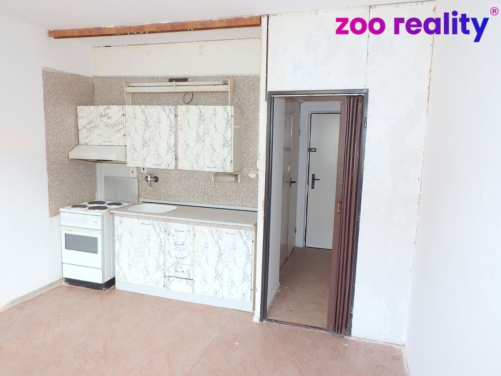 Byt 1+1, v družstevním vlastnictví, v původním stavu o celkové výměře 39m2, který se nachází v 5. nadzemním podlaží šestipatrového domu, ul. Fügnerova, Teplice. Dům je zateplený. Byt je v původním stavu, umakartové jádro, k bytu patří lodžie na patře a sklep. Byt se skládá z předsíně (2,6m2), obývacího pokoje (16m2), kuchyně (13,5m2), koupelny a WC. V byte jsou plastové okna, na podlaze je linoleum. V blízkosti veškera občanská vybavenost: zastávka MHD, škola, školka, bazén, lázeňská zóna, obchody. Několik zastávek trolejbusem do centra Teplic.