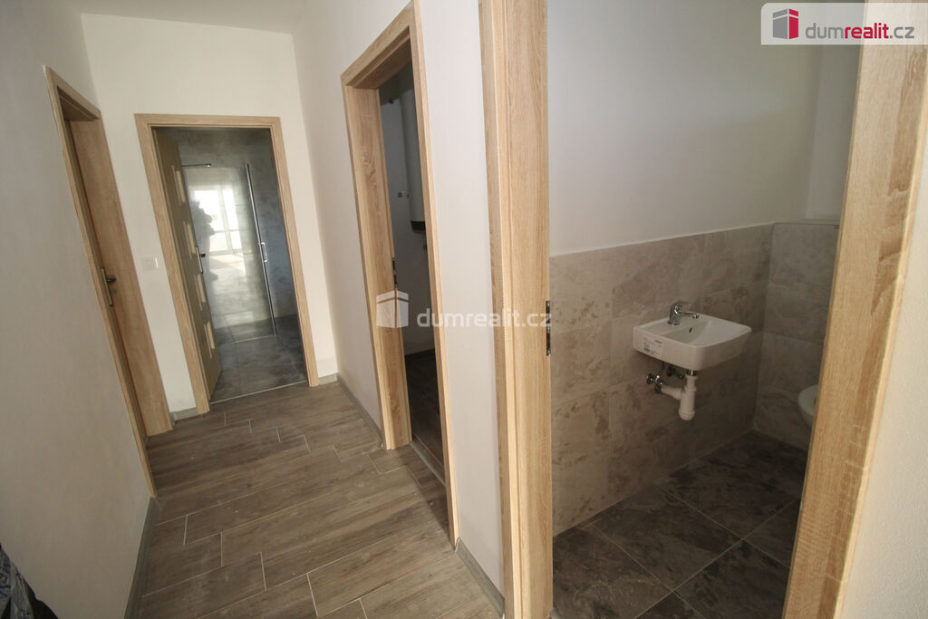 Dumrealit.cz Vám zprostředkuje koupi novostavby rodinného domu 3+kk v Rájově u Mariánských Lázních. Dům se nachází na rovinatém pozemku o rozloze 816 m² u silnice s bezproblémovým přístupem. Dům o rozloze 97 m² nabízí dispozici 3+kk, je zde prostorný obývací pokoj spojený s kuchyňským koutem a francouzským oknem, z kterého je výstup na budoucí terasu, dále jsou zde dva samostatné pokoje, technická místnost, koupelna a samostatná toaleta. Dům z ytongových tvárnic má hotový krov s plechovou střechou ve tvaru tašek. V domě je připravena a rozvedena elektroinstalace, vodoinstalace, plastová okna, na podlahách je kombinace dlažby a vinylu. V domě jsou již hotové omítky, v prostorné koupelně s oknem je k dispozici vana i sprcha. Vytápění zajišťuje již dodané tepelné čerpadlo, v celém domě je podlahové vytápění, ohřev teplé vody zajišťuje bojler. Zdrojem vody je studna, dům je napojen na kanalizaci. Dům se prodává bez kuchyňské linky (je zde příprava). Součástí ceny není oplocení. Dokončená je venkovní bledě modrá omítka včetně zateplení. Obec Rájov se nachází v bezprostřední blízkosti Mariánských Lázní, nedaleko obce Zádub-Závišín, kde je vyhledávané golfové hřiště. Za domem je krásná cyklotrasa vedoucí přes Nimrod, Prameny, Polom, Kladskou a dále do Kynžvartu. V Mariánských Lázních je veškerá občanská vybavenost včetně úřadů, bank, restaurací, obchodů, jsou zde supermarkety LIDL, PENNY, TESCO, Kaufland, BILLA, DM, Planeo elektro, JYSK, super ZOO, TAKKO, KIK, Deichmann. Mariánské Lázně jsou úžasné místo pro život i odpočinek, jsou prošpikované sítí turistických, cyklistických a běžkařských tras. Sportovcům je k dispozici plavecký bazén, sportovní areál Viktorka, plochá dráha, zimní stadion pro bruslaře, lyžařská sjezdovka s lanovkou, jezdecká škola, tenisové kurty, v létě je v provozu koupaliště Lido s písečnou pláží. Úžasné městské parky nabízí krásná zákoutí: Kolonádu se zpívající fontánou a přilehlý labutí park, Ferdinandův pramen, Lesní pramen, Rudolfův pramen, Medvědí pramen, Geologický park, obůrku Hvozd s daňky a jeleny. Mariánské Lázně se roku 2021 dostaly na seznam světového kulturního dědictví UNESCO, skýtají klid lázeňského města se zdravou vodou a čistým ovzduším. Mariánské Lázně se nacházejí v blízkosti německých hranic, tedy je vhodné pro ty, kteří tam hledají pracovní uplatnění. Cena zahrnuje provizi RK a veškerý právní servis. V případě potřeby Vám rádi doporučíme naše prověřené finanční specialisty. Ev. číslo: 652885.