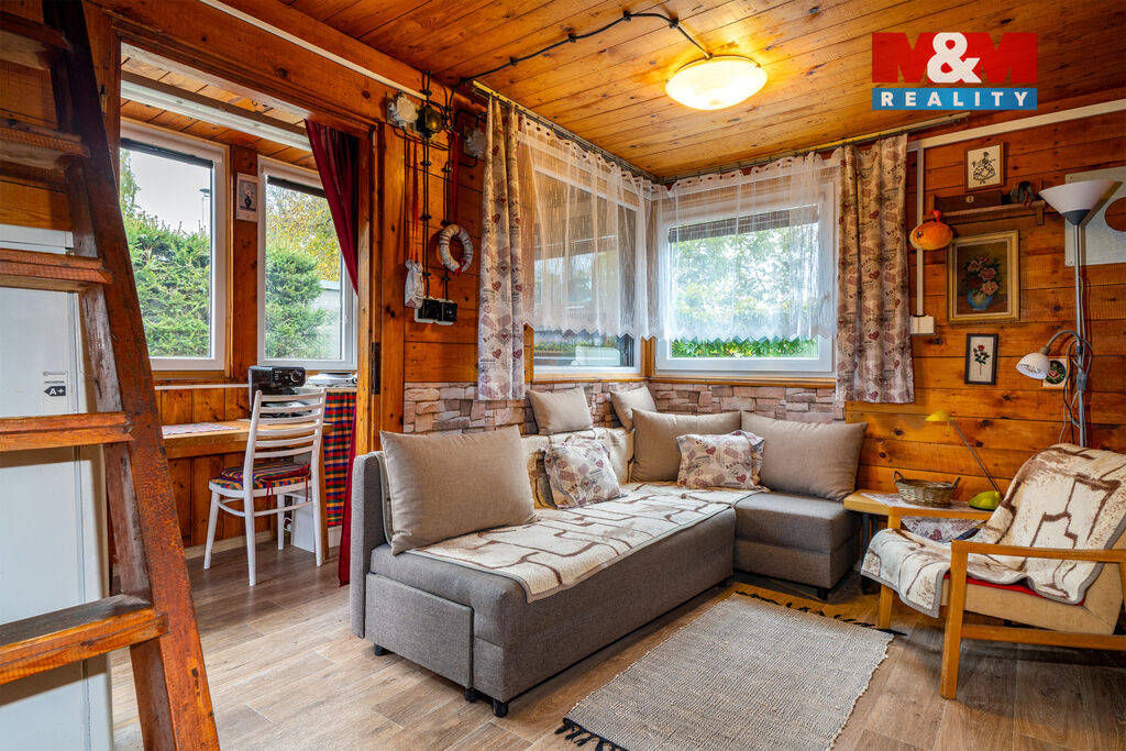 Nabízíme k prodeji útulnou chatu v krásném místě, kousek od Labe v obci Kunětice. Ideální nemovitost pro vaši rekreaci a odpočinek vhodnou i k celoročnímu využití. Chata o užitné ploše 36 m² je dřevěné konstrukce a nachází se na pozemku o rozloze 405 m². Dispozice chaty zahrnuje 3 místnosti rozložené do dvou nadzemních podlaží. Nemovitost prošla postupně rekonstrukcemi: plastová okna, zateplení, pergola se zimní kuchyní, kůlna, parkovací stání. Zavedena elektřina, voda ze studny, WC separační. V chladných dnech lze chatu vytápět elektrickým radiátorem, k dispozici je i funkční komín. Okrasná zahrada s možností pěstování zeleniny nabízí příjemné prostředí k pobytu. Lokalita skýtá možnosti výletů pěšky i na kole, blízkost Labe potěší rybáře. V okolí naleznete restaurace, bistro, a vynikající místní zmrzlinu. Nepropásněte tuto jedinečnou příležitost k relaxaci v klidné části obce. Prohlídkový den se bude konat 1.11.2025 v dopoledních hodinách, v případě zájmu kontaktujte Jana Kubíčka.