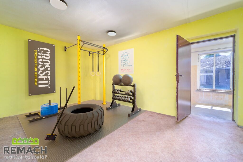 Z dlouhé prosklené vstupní chodby u nádvoří vede několik vstupů do samostatných místností, kdy jednu z nich můžete přebudovat třeba na fitko nebo wellness.