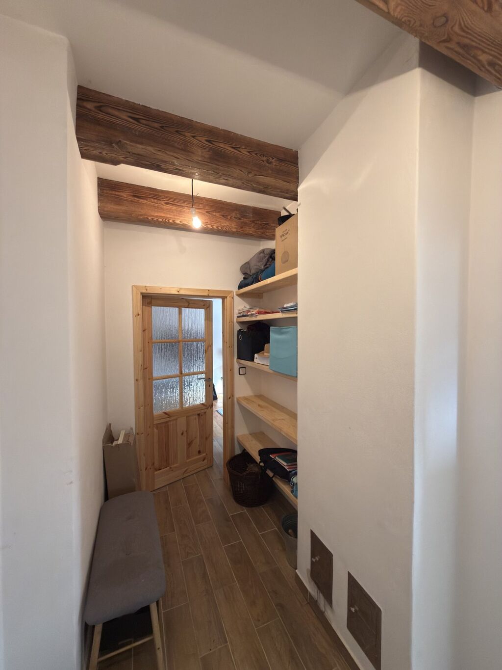 Srdcem domu jsou kamna s biotopeništěm se sytémem sálavého tepla, která mohou skrze průduchy vytápět případně i podkrovní místnosti. Dům je plánováno propojit se zahradou skrze terasu se vstupem přes francouzké okno v obytné kuchyni. Dominantou místností jsou nové stropní ručně otesávané a opálené trámy.