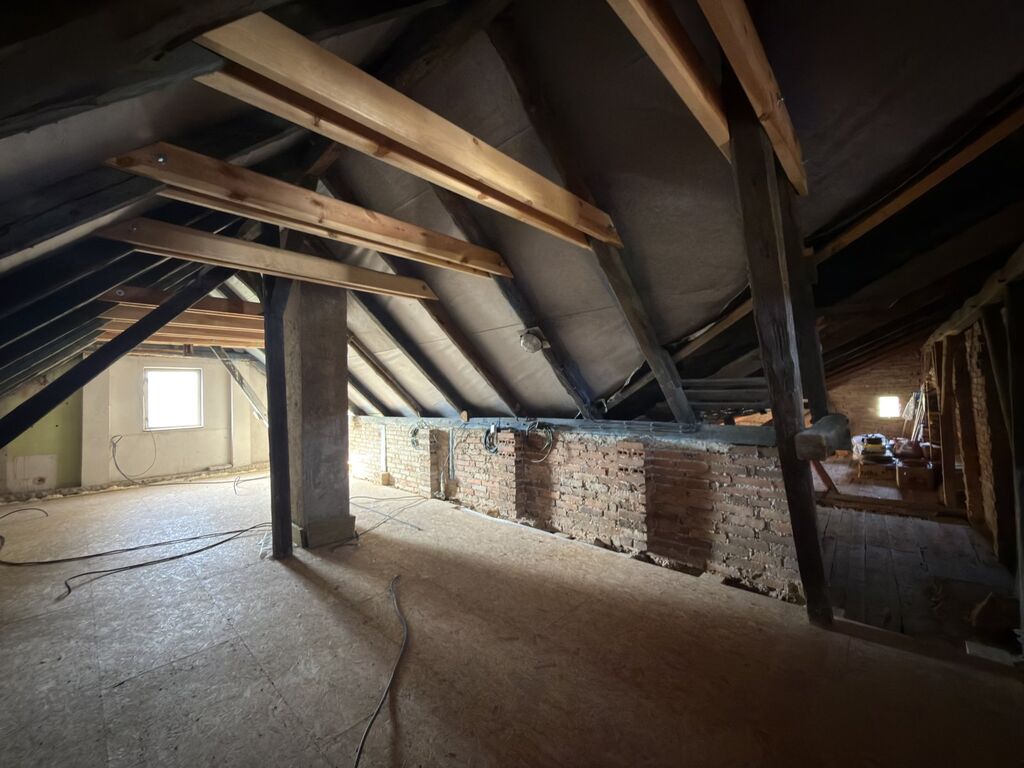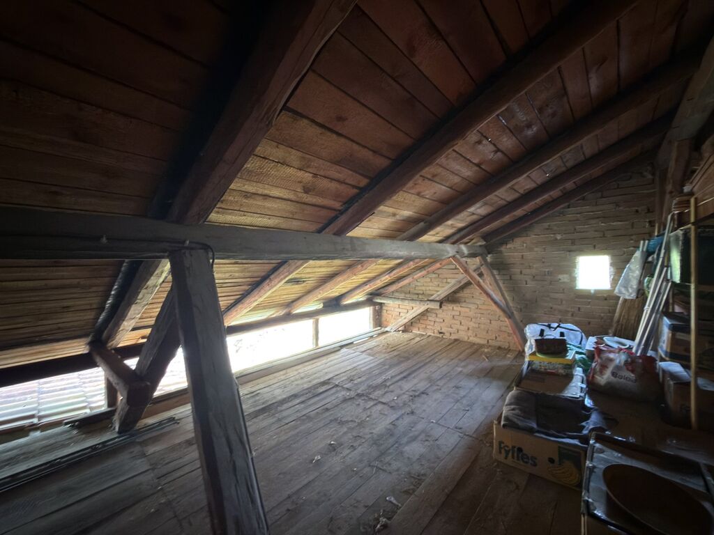 Dům je přímo u návsi s rybníkem, nabízí dispozici 2+kk (50m2) jako útulné plně funkční zázemí s plánovaným rozšířením o podkroví, dále zahrnuje garáž, částečně podsklepený prostor a stodolu. Do podkroví jsou vyvedené husími krky přípojky pro budoucí zapojení elektřiny, vody a odpadů. Jedná se o smíšenou stavbu (kámen - cihla) s orientací na jih a západ, ideální pro maximální využití světla a případného fotovoltaického systému na ohřev vody nebo napájení spotřebičů. (Je možno využít dotačního programu k zateplení domu i střechy)