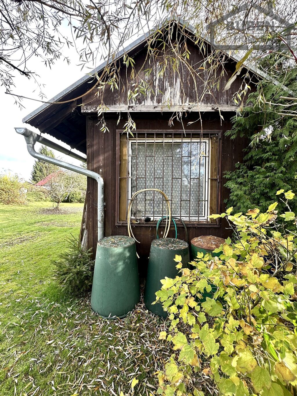 Celková plocha pozemku činí 425 m2. Pozemek je v katastru nemovitostí veden jako trvalý travní porost. Na zahradě se nachází chatka (15m2, zapsaná v katastru nemovitostí jako jiná stavba) a kolna na nářadí.