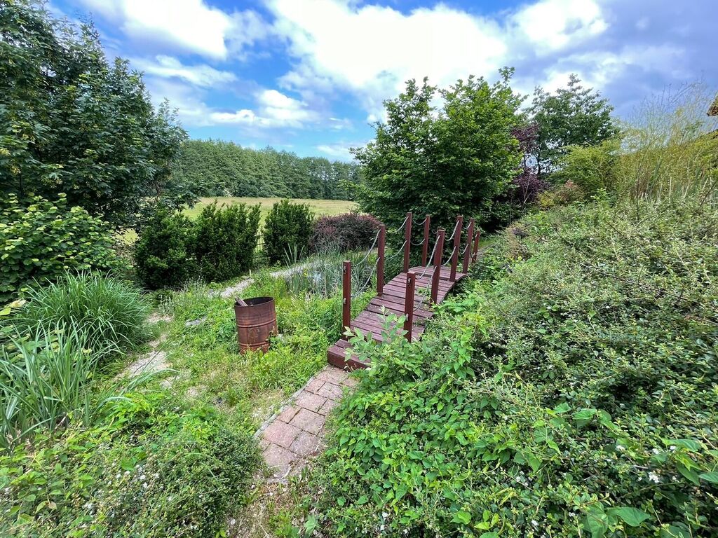 Pozemek: 3 293 m². Klíčovou výhodou je naprosté soukromí: pozemek je krajní a sousedí pouze z jedné strany. Areál je udržovaný a nachází se na něm dvě malá umělá jezírka.