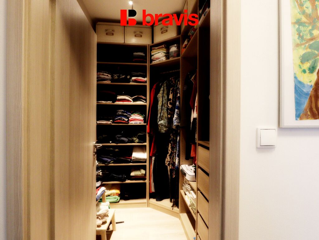 V chodbě (7,5 m2) je samostatná šatna/komora (4,5m2) s regálovým systémem.
