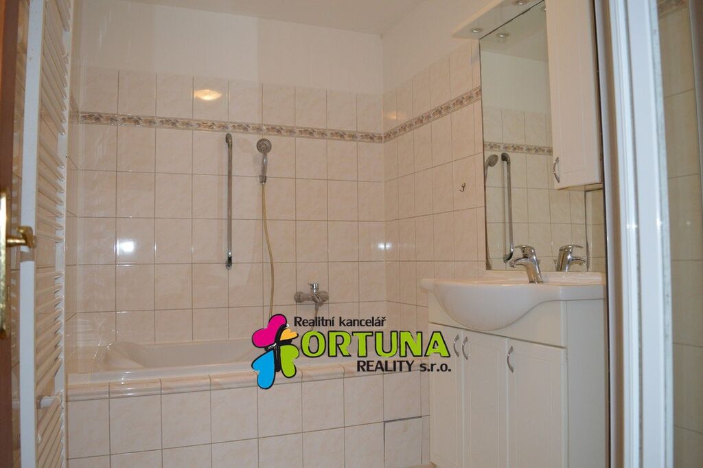 Dále je po několika schodech chodba, ze které je vstup do druhé ložnice, koupelny s vanou a sprchovým koutem, samostatného WC a do technické místnosti s plynovým kotlem.