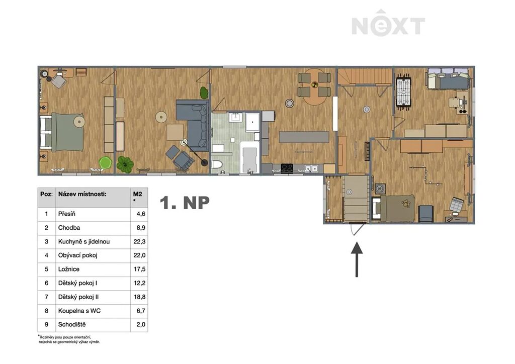 • Dva dětské pokoje vhodné pro mladou rodinu