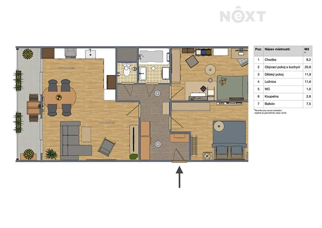 • Rozloha: Užitná plocha bytu činí cca 69 m² + lodžie 6 m².