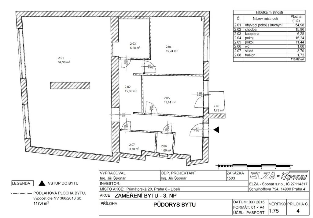 Prodej bytu 3+kk, Praha - Libeň, Primátorská, 117 m2