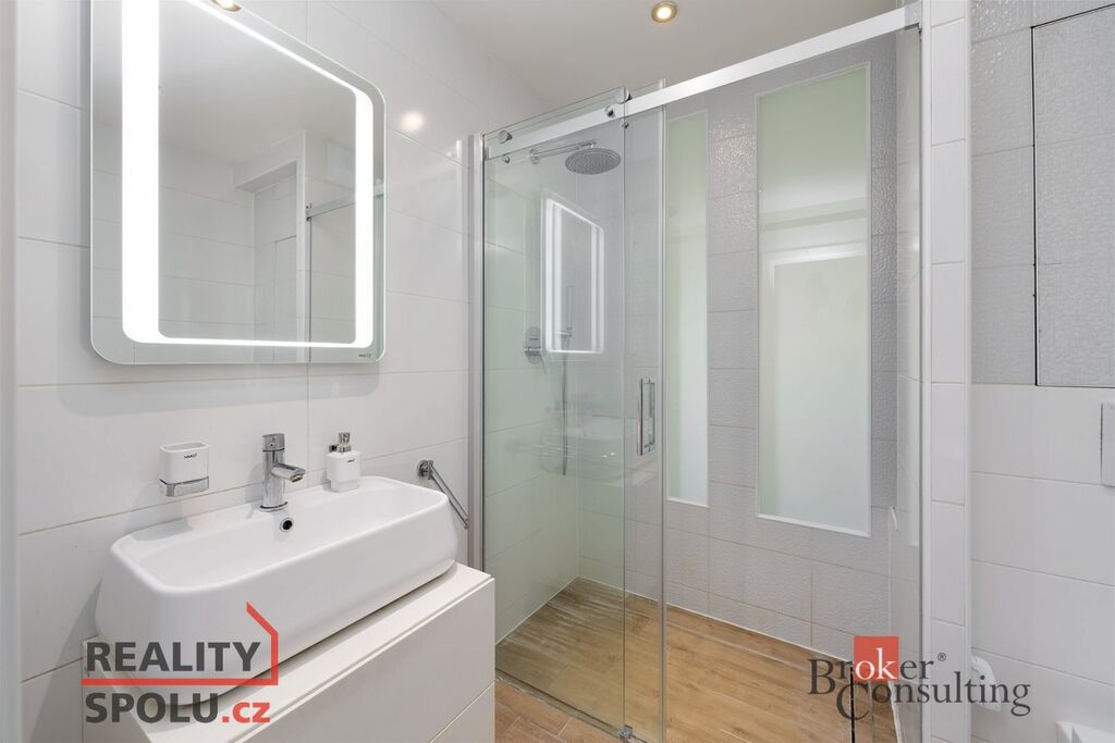 - Vkusně zrekonstruovaná koupelna se sprchovým koutem a podlahovým žlabem