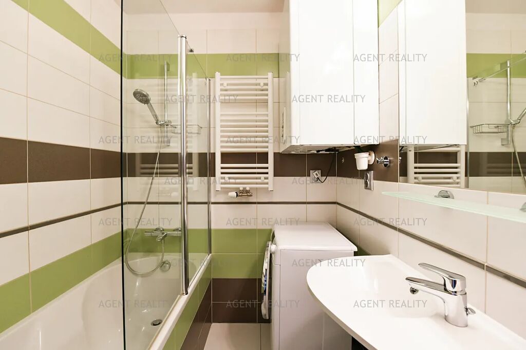 Byt se nacházá ve 2NP a je pronajímán nezařízený. Vstupní chodba a předsín, prostorný obývací pokoj s kuchyňským koutem vybaveným kvalitními spotřebiči (el. trouba, sklokeramická deska, kombinovaná lednice, mikrovlnná trouba).