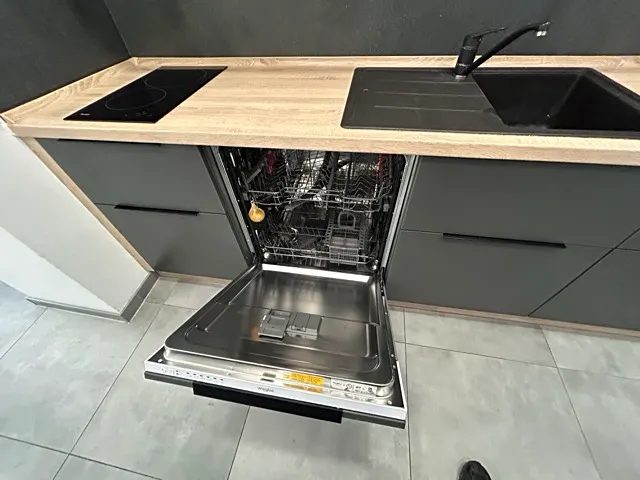Kuchyňská linka s varnou deskou, myčkou a mikrovlnnou troubou