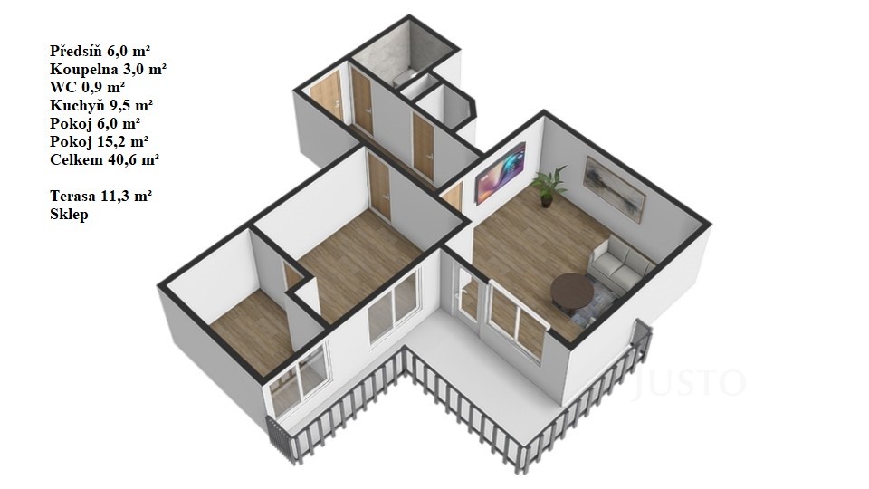 Hlavní předností tohoto bytu je velká terasa orientovaná na východ, která poskytuje skvělý výhled do tichého vnitrobloku a zajišťuje dostatek soukromí i příjemné místo k odpočinku nebo posezení s přáteli. Dispozice bytu 2+1 nabízí možnost úprav na moderní 2+kk dle vlastních představ. Oba pokoje jsou neprůchozí, což zajišťuje komfortní bydlení jak pro jednotlivce, tak pro mladé páry. Součástí bytu je také sklep, který poskytuje další úložný prostor.