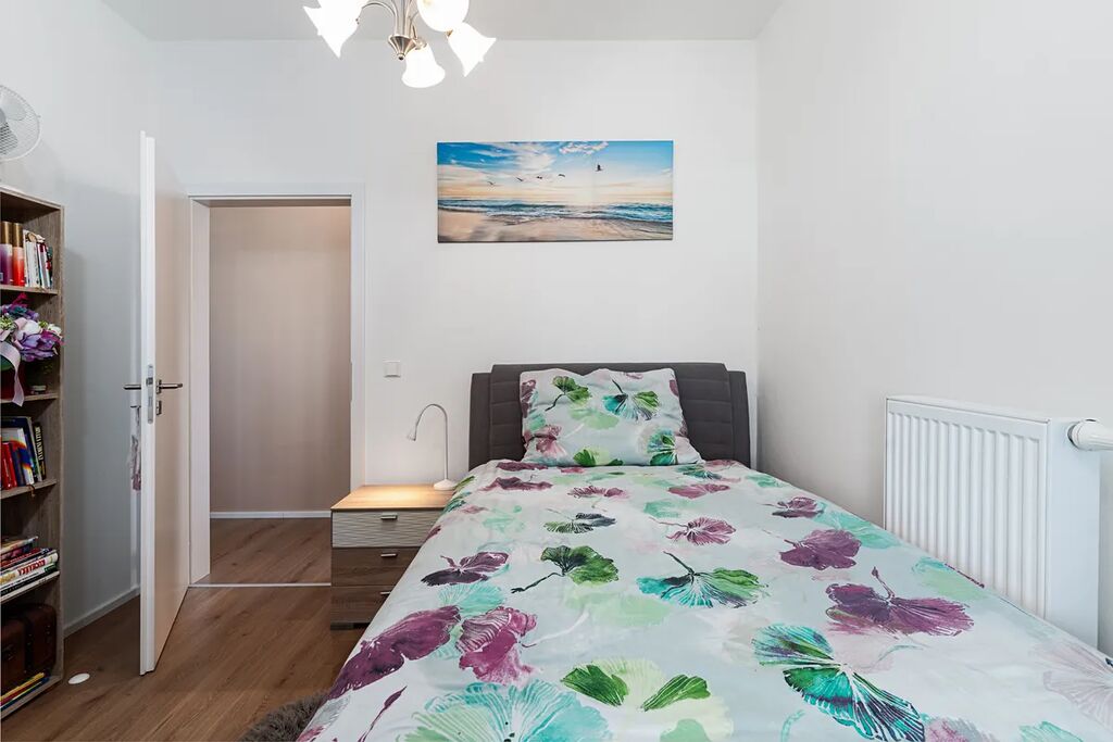 Dispozice bytu je navržena tak, že z prostorné předsíně je přímý vstup do všech obytných místností.
