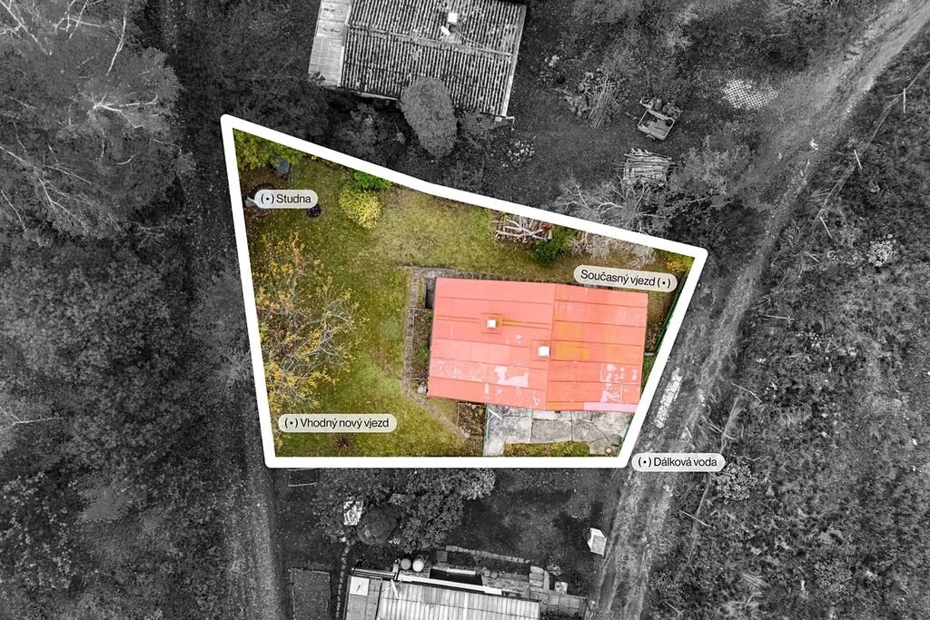 V suterénu je sprchový kout s elektrickým bojlerem, sklad, vodárna a dílna (bývalá garáž), což zajišťuje praktické zázemí pro každodenní i rekreační využití.